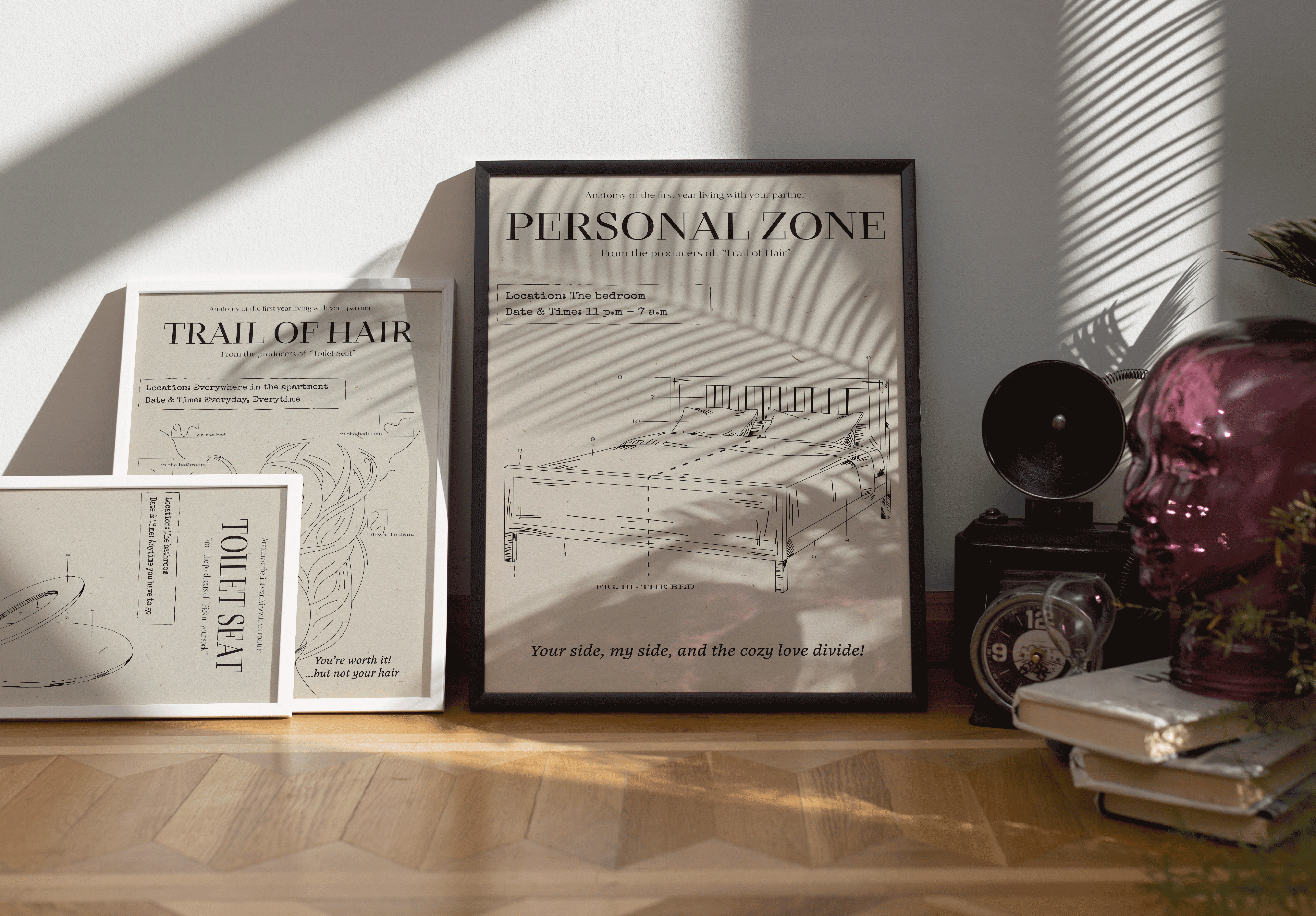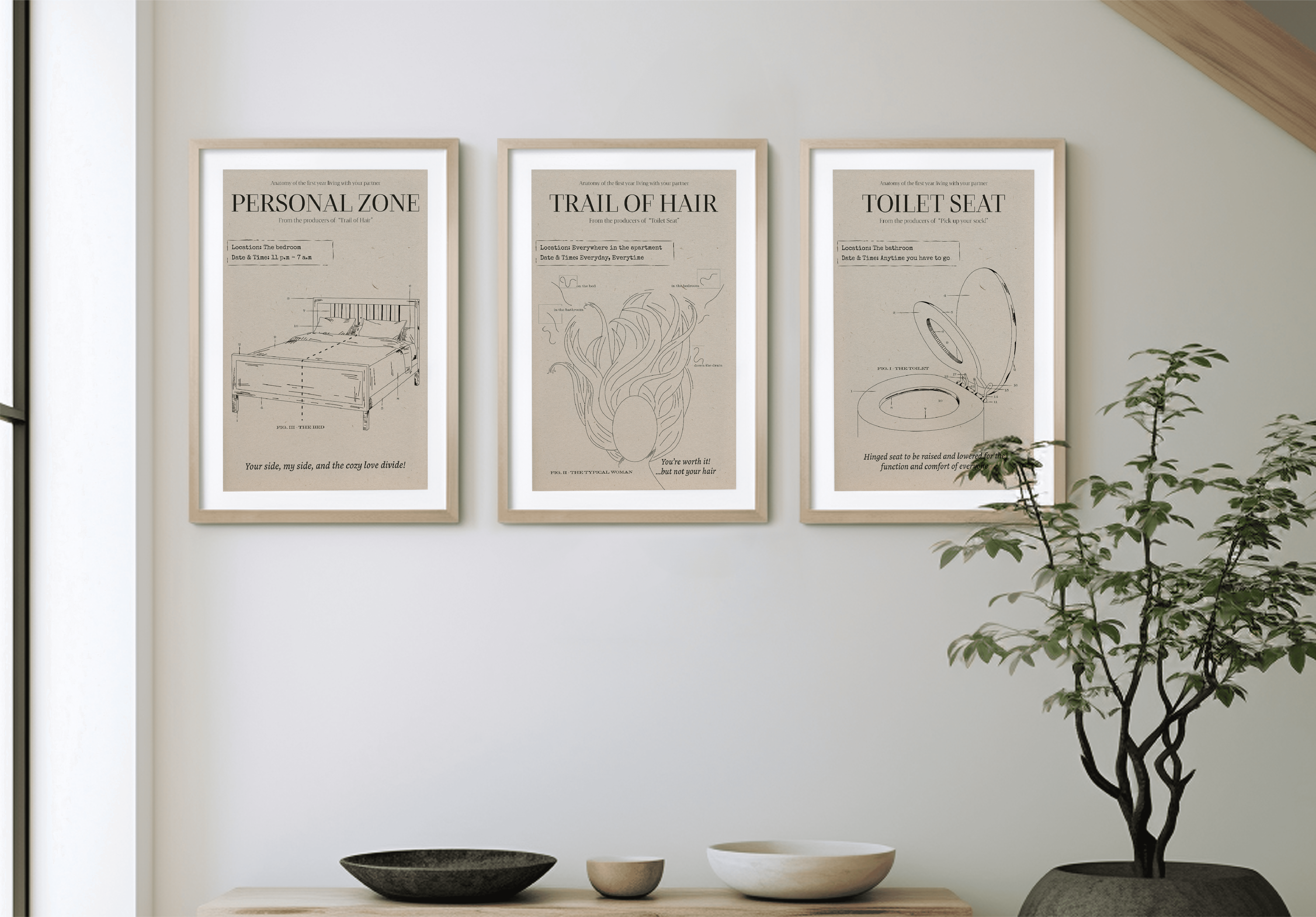 This poster series offers a lighthearted guide to the chaos, helping couples not just survive cohabitation but laugh their way through it.