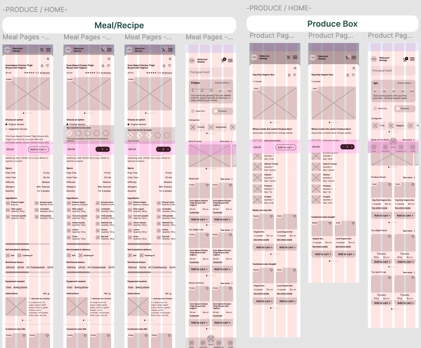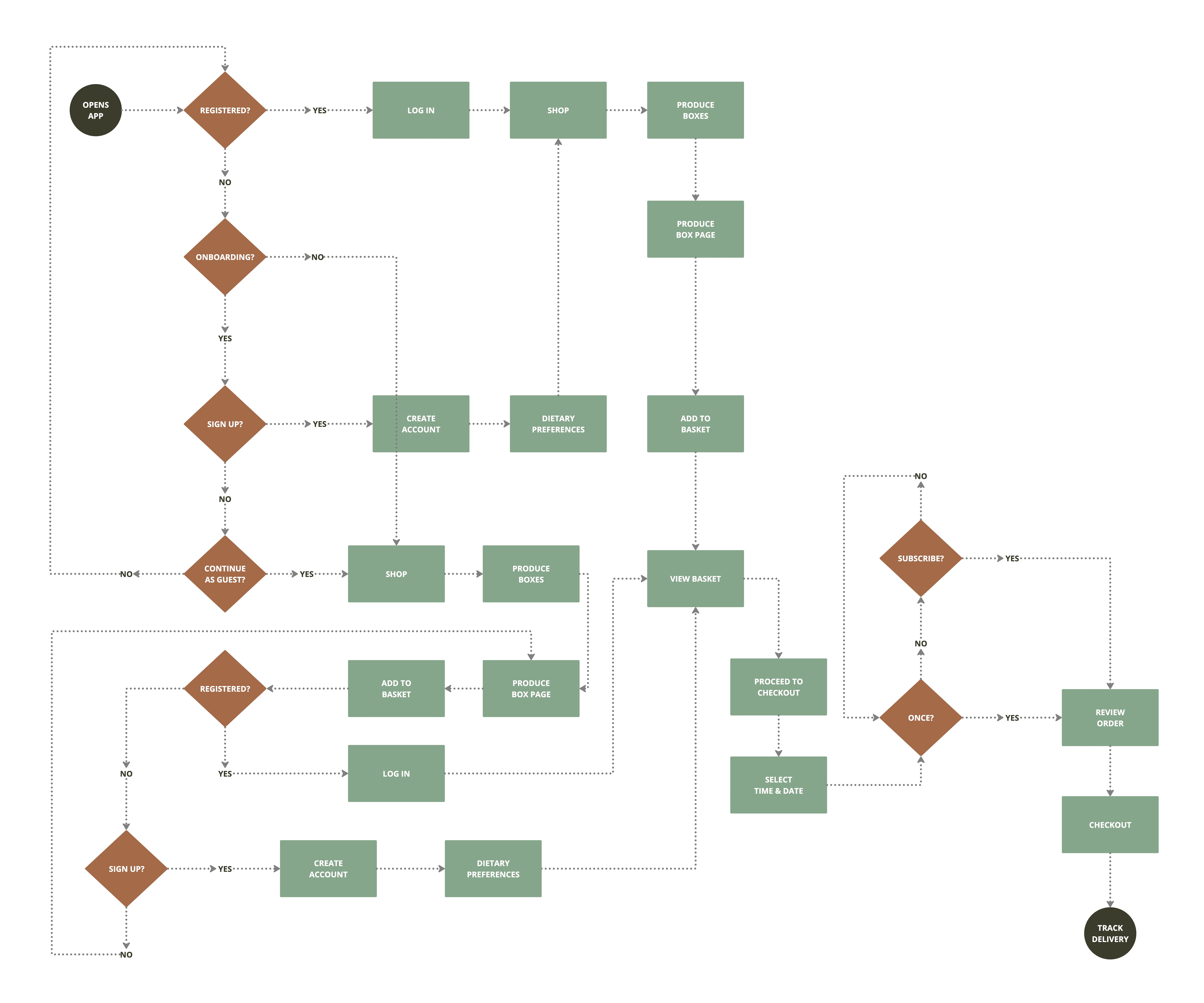 2. Subscribing to a produce box (figure 10): This flow focuses users subscribing to a produce box.