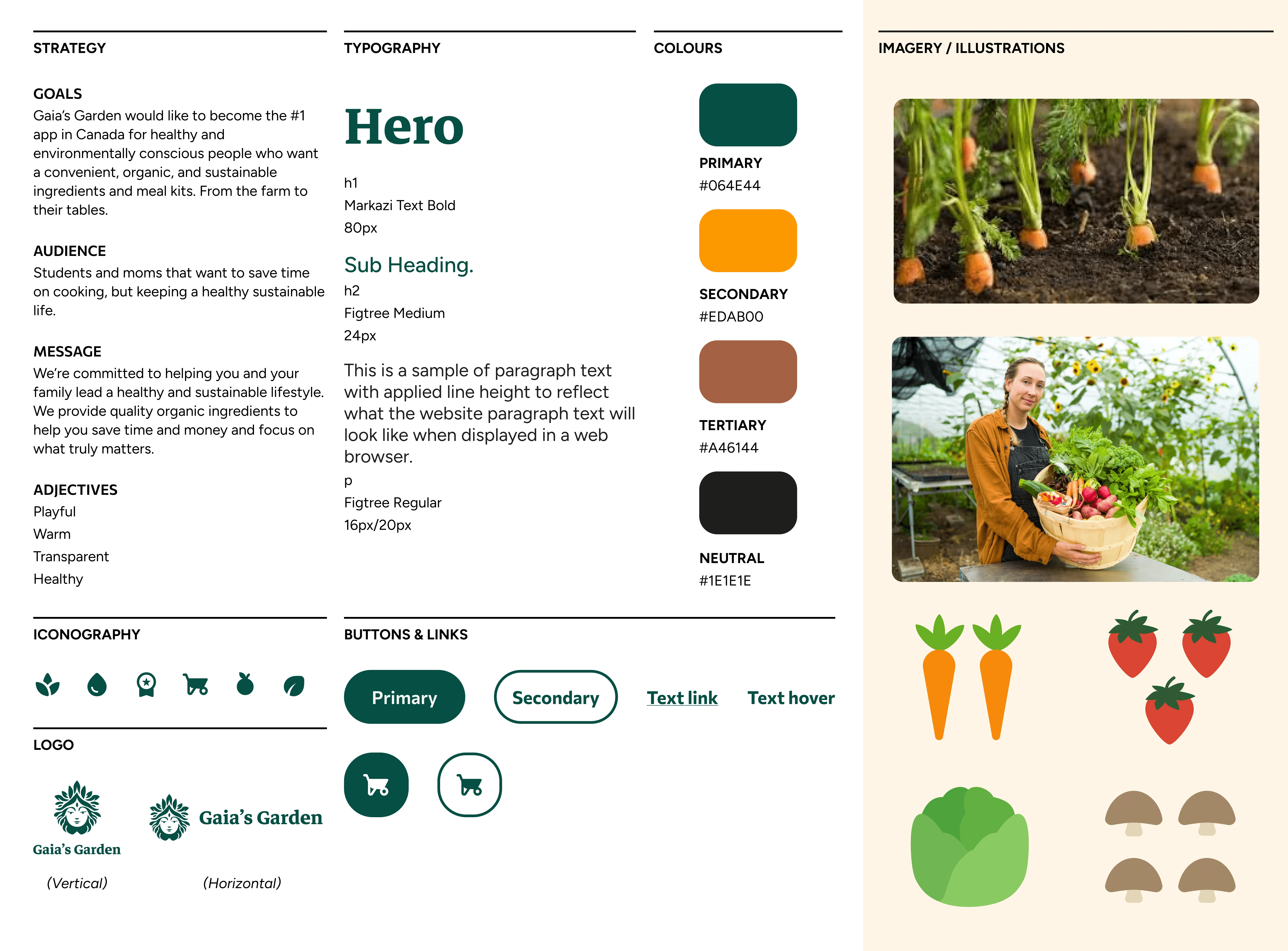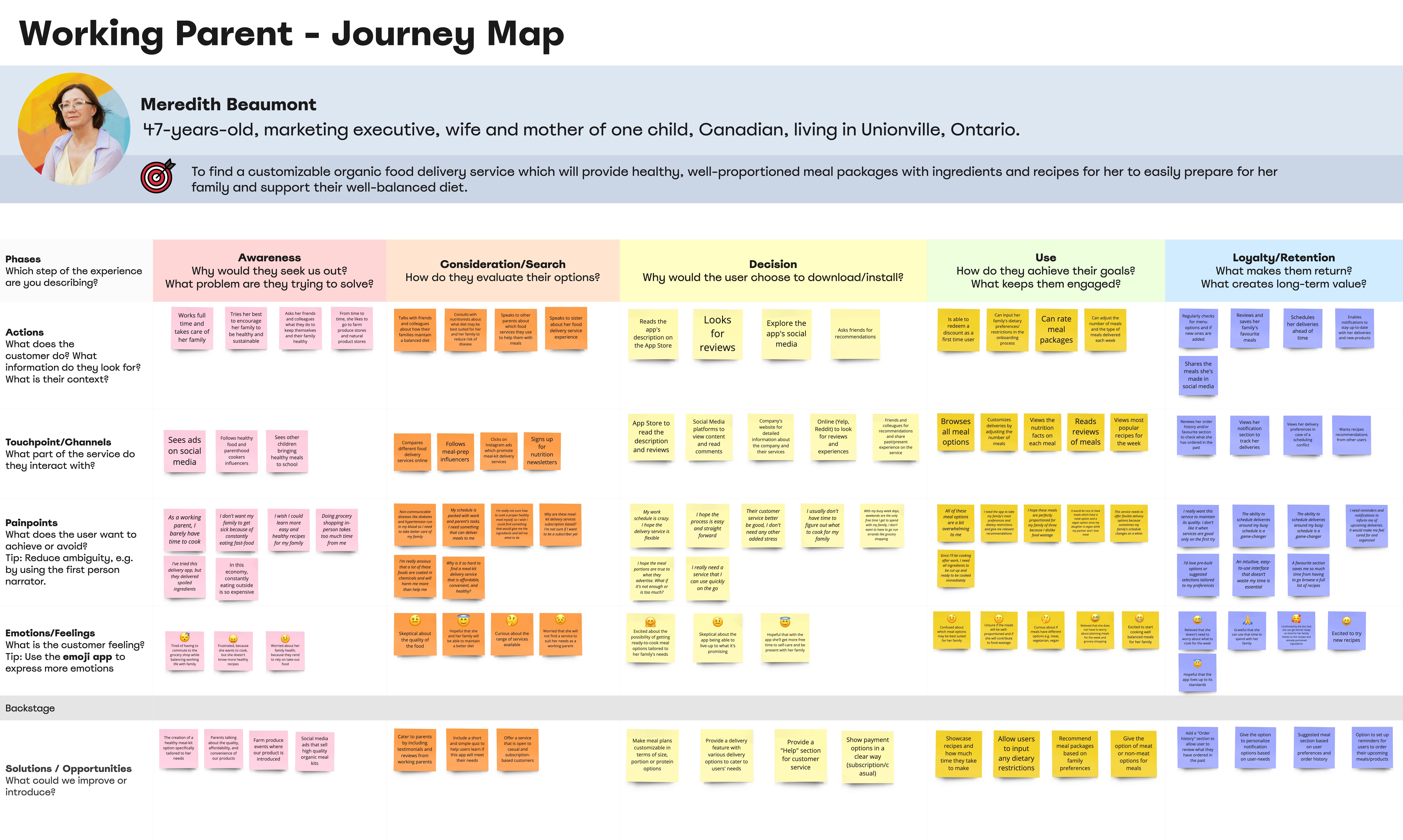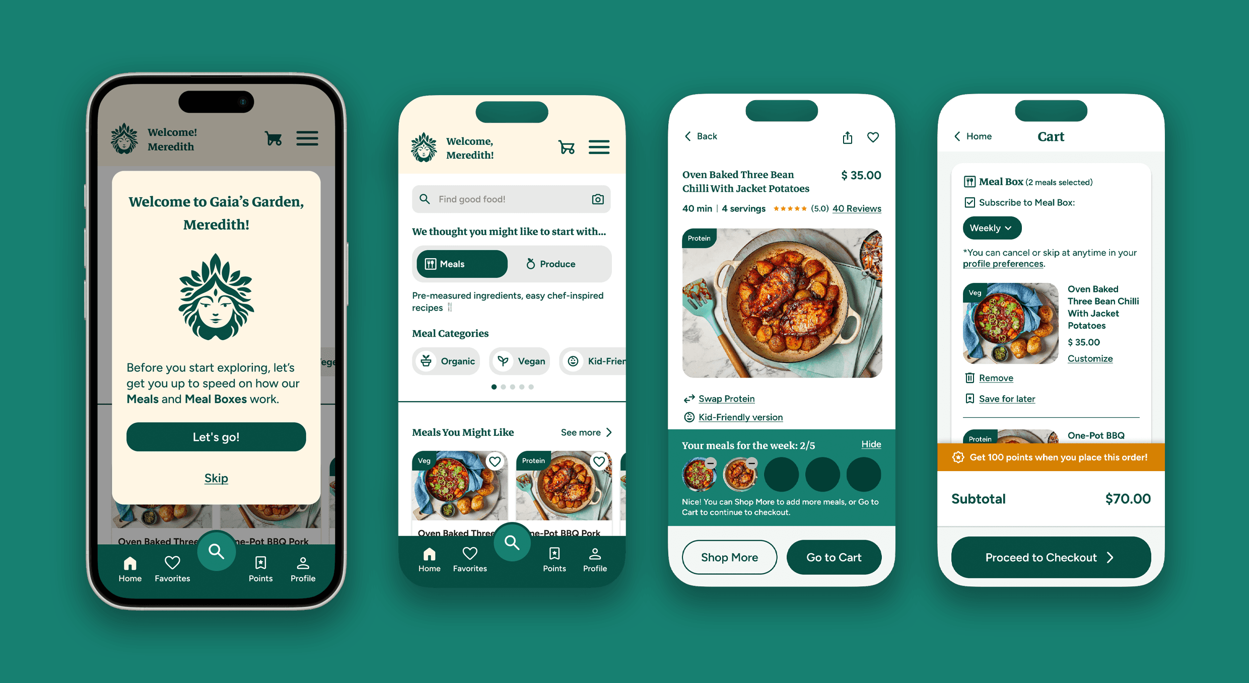 To create a seamless, intuitive experience, we developed user journey maps based on Gaia's Garden's primary personas. These maps visualize each step - from discovering the app and researching options to placing an order and receiving a delivery (figure 4: meal boxes, figure 5: organic produce).