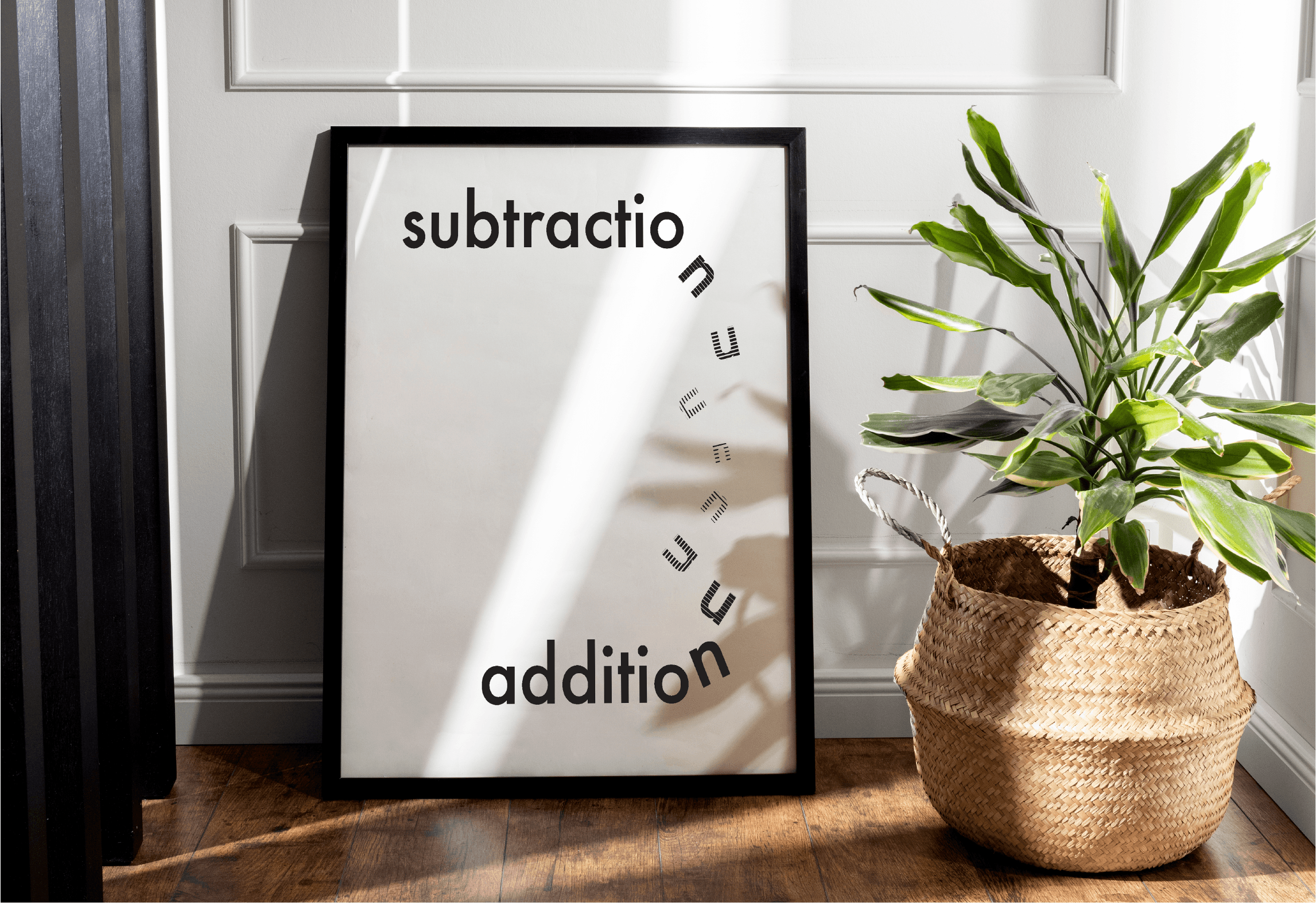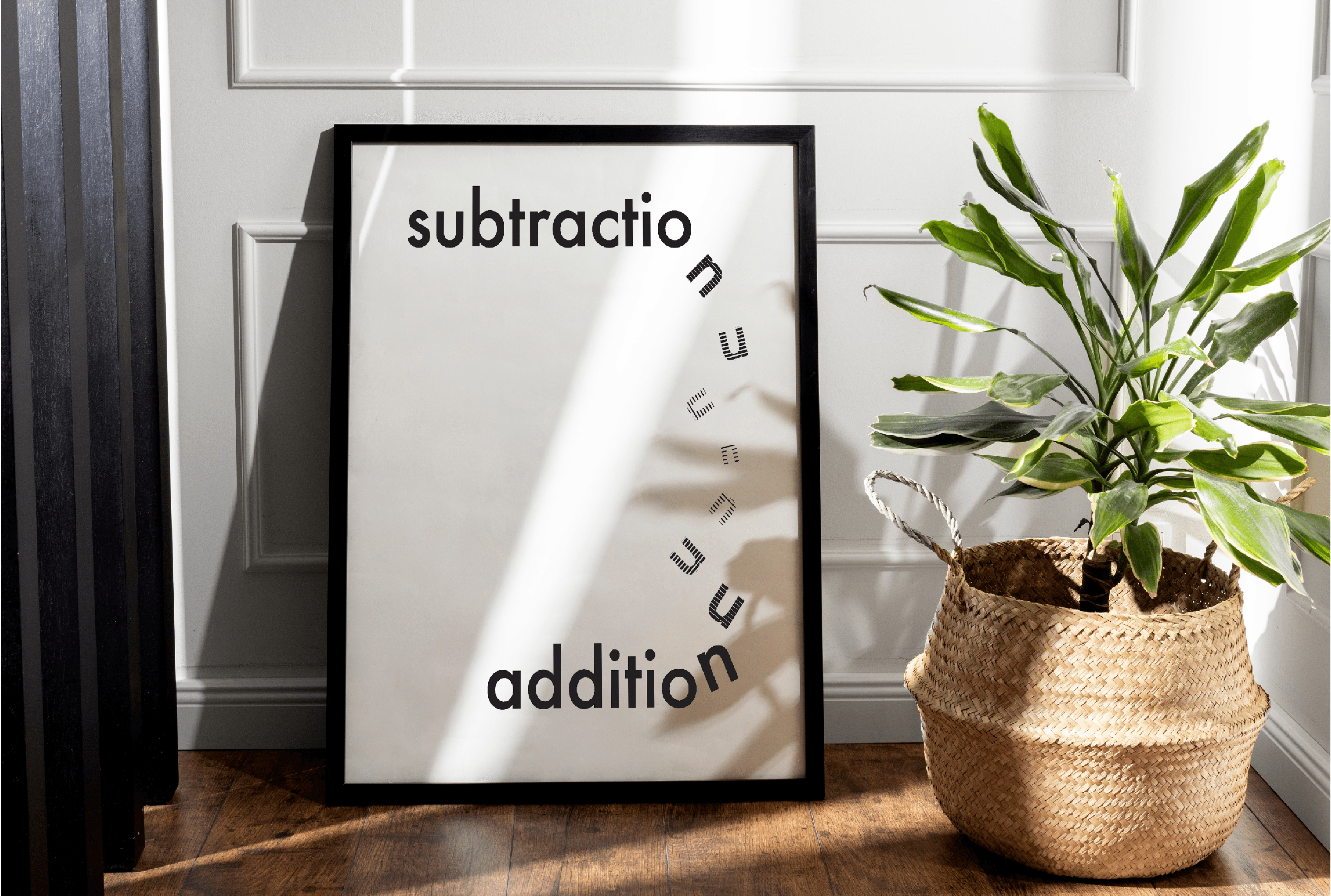 Using these contrasts, I created a visual poster defining the concepts of “subtraction” and “addition” with the Futura PT typeface, aiming to convey meaning through typographic contrast.
