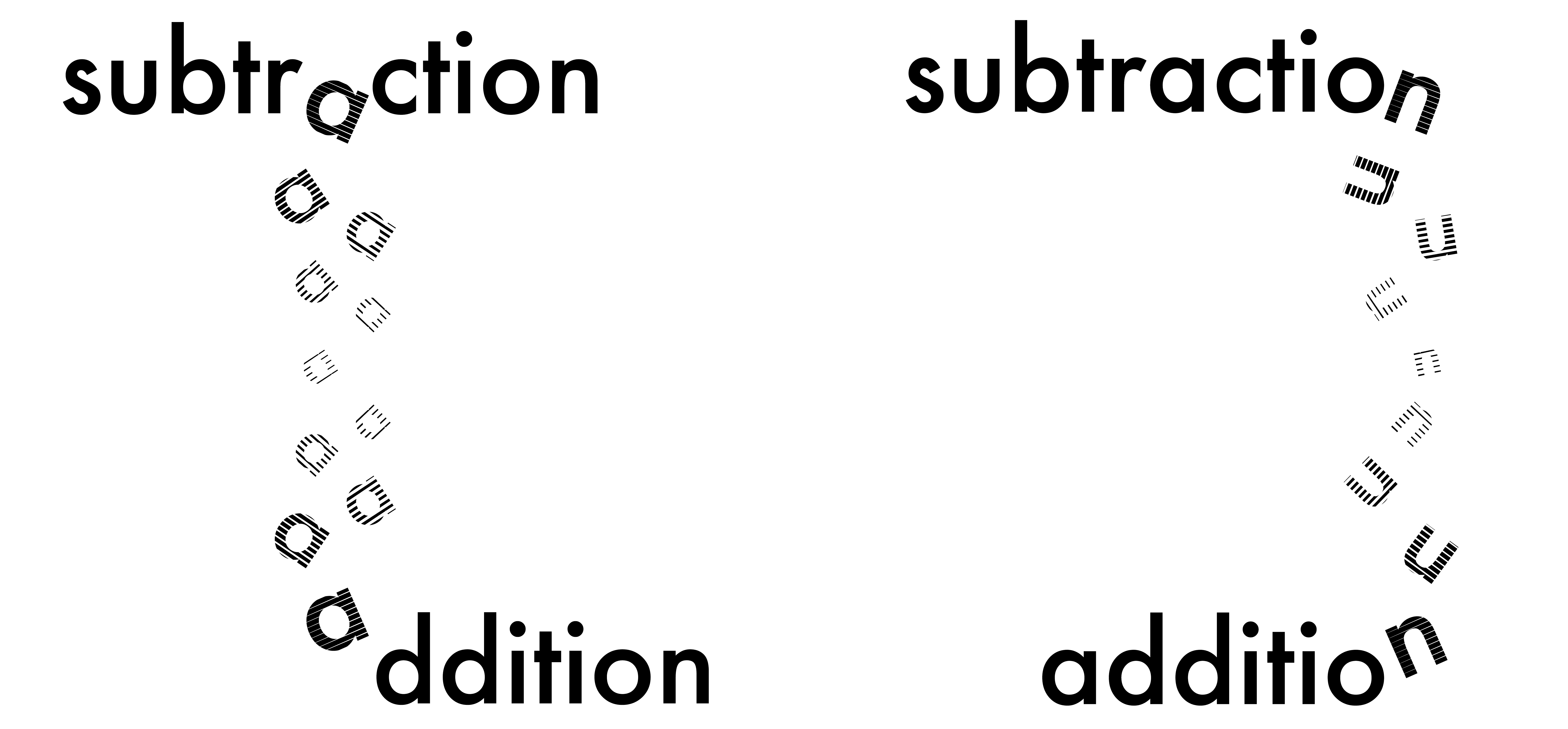 Figure 1: Sketches of ideas for the visual typography of the words "subtraction" and "addition"